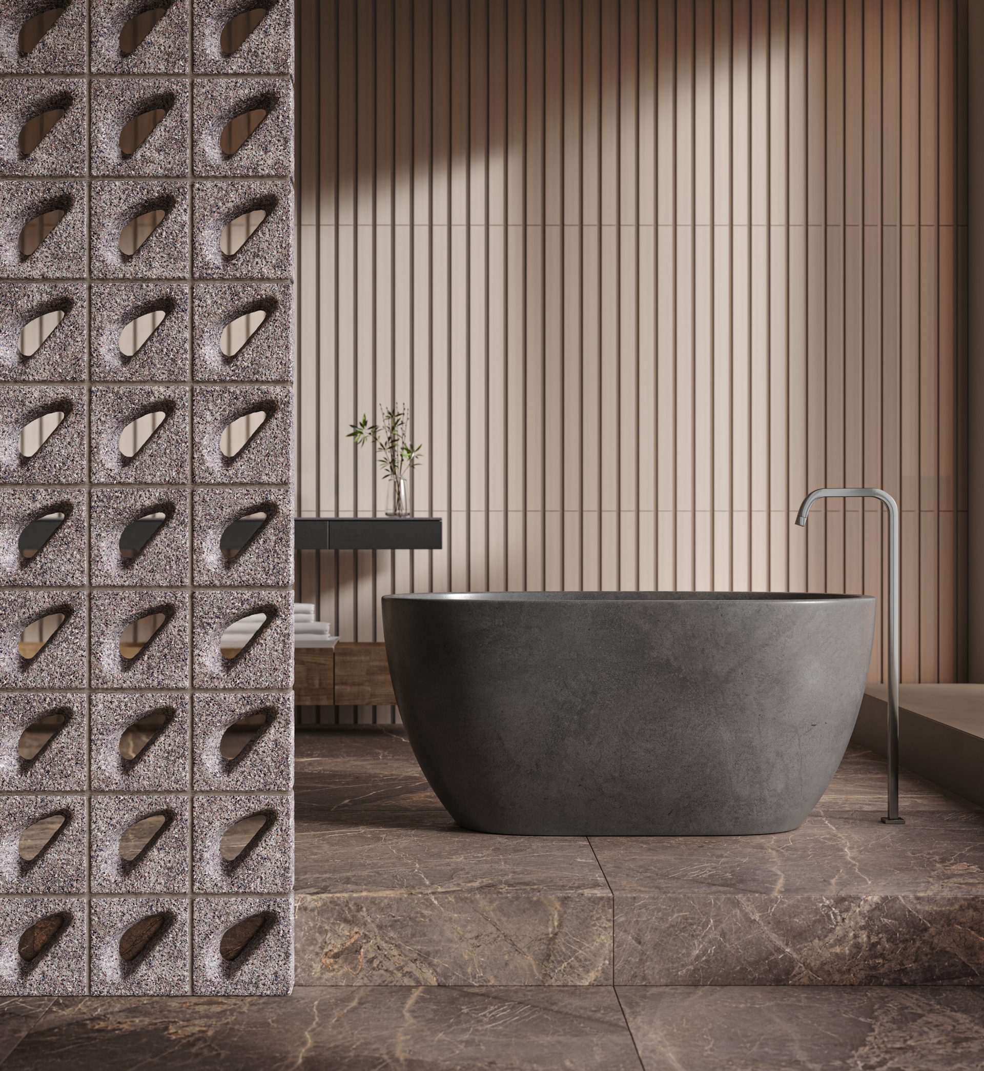 The Ripa Mood concept was revisited in new and surprising marbles: classic Bianco di Lucca and intense or de Cacau.