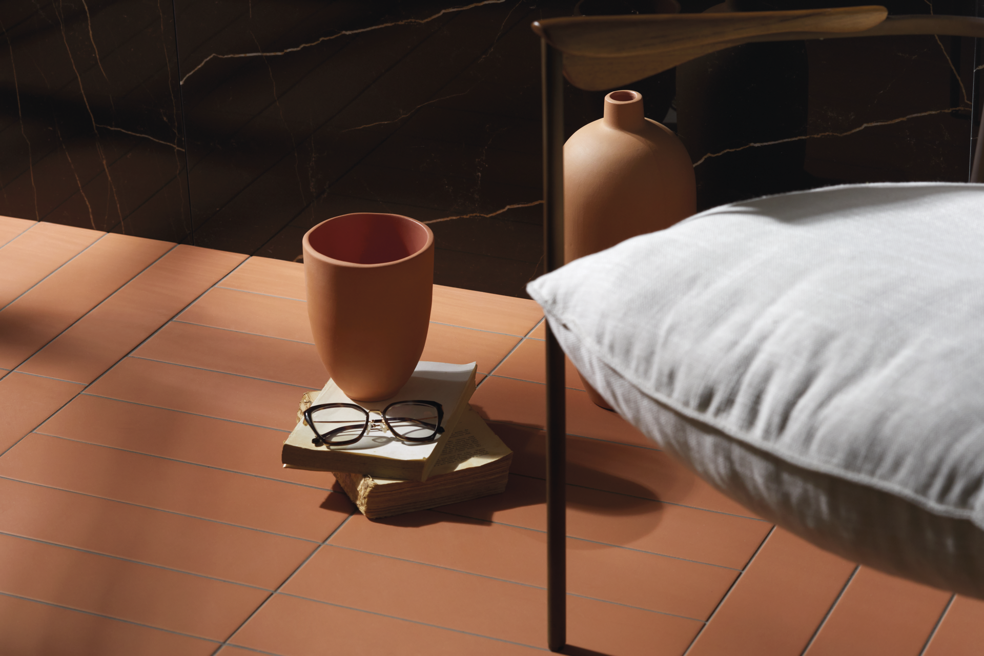 A color analysis, starting from an immersion in the reconnection and identity trend, resulted in an vibrant palette of earthy tones, complemented by cool, nature-inspired nuances. The matte surface connects joints and special