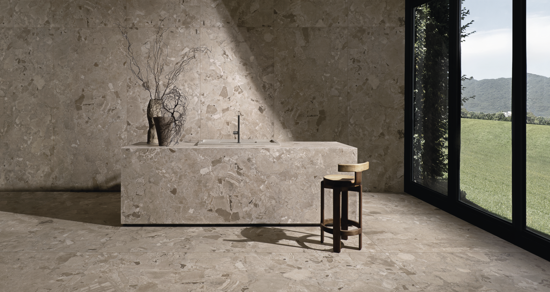 Breccia Collection es el resultado de experiencias con este concepto. Un trabajo artesanal de design que incrusta algunas gemas preciosas en otras piedras, formando un retal de rocas singulares.