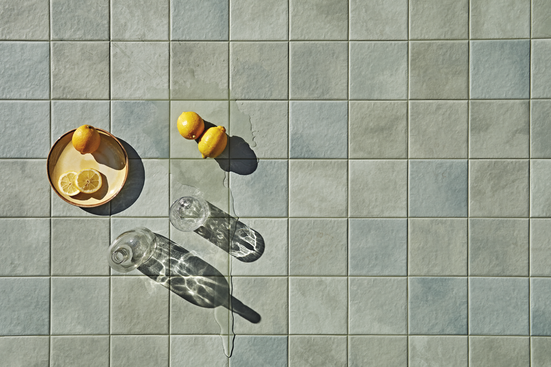 Los cinco colores disponibles en formato14,5 x 14,5 pasan por diferentes tonos de verde y azul y ofrecen un mood refrescante en perfecto equilibrio con la naturaleza.