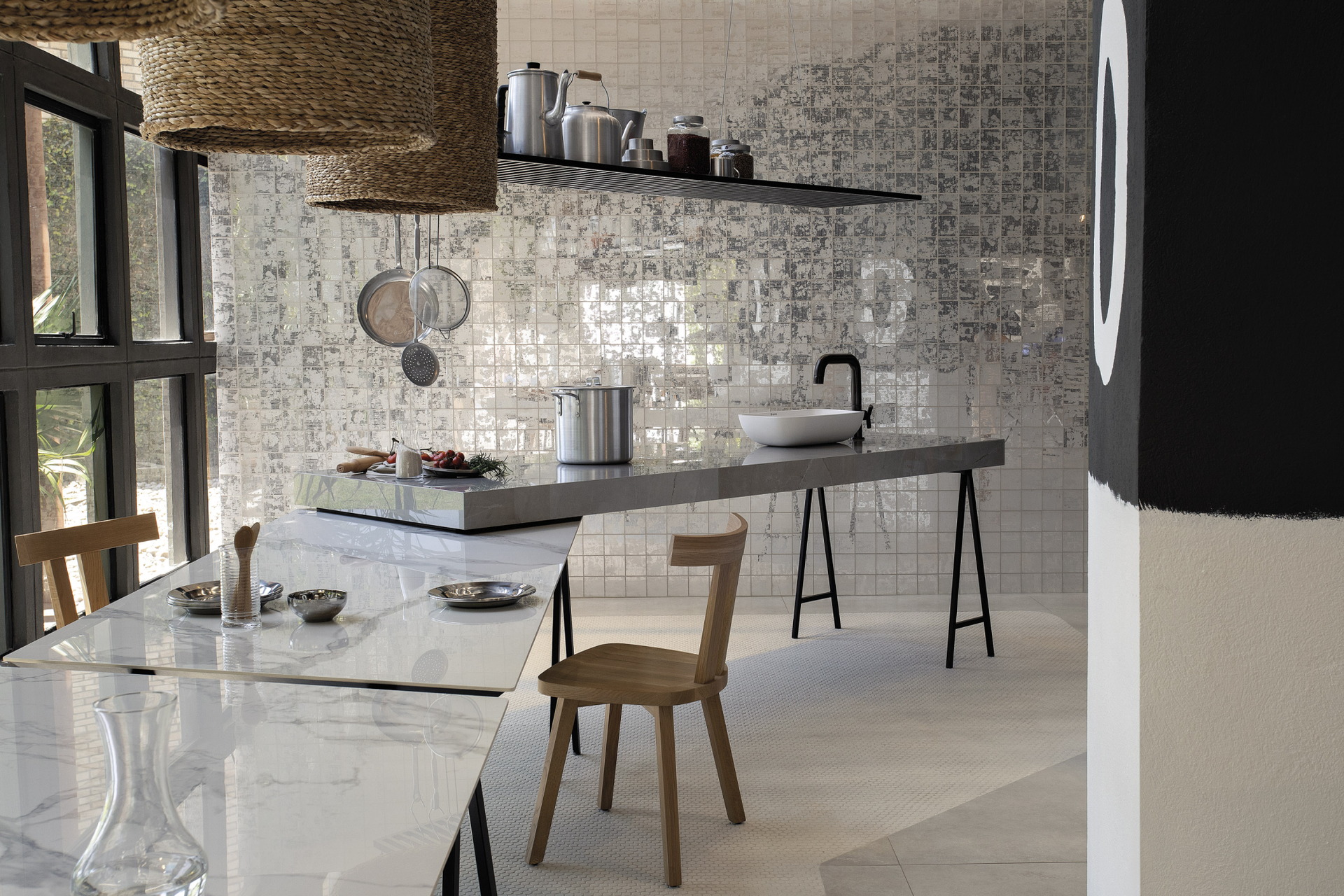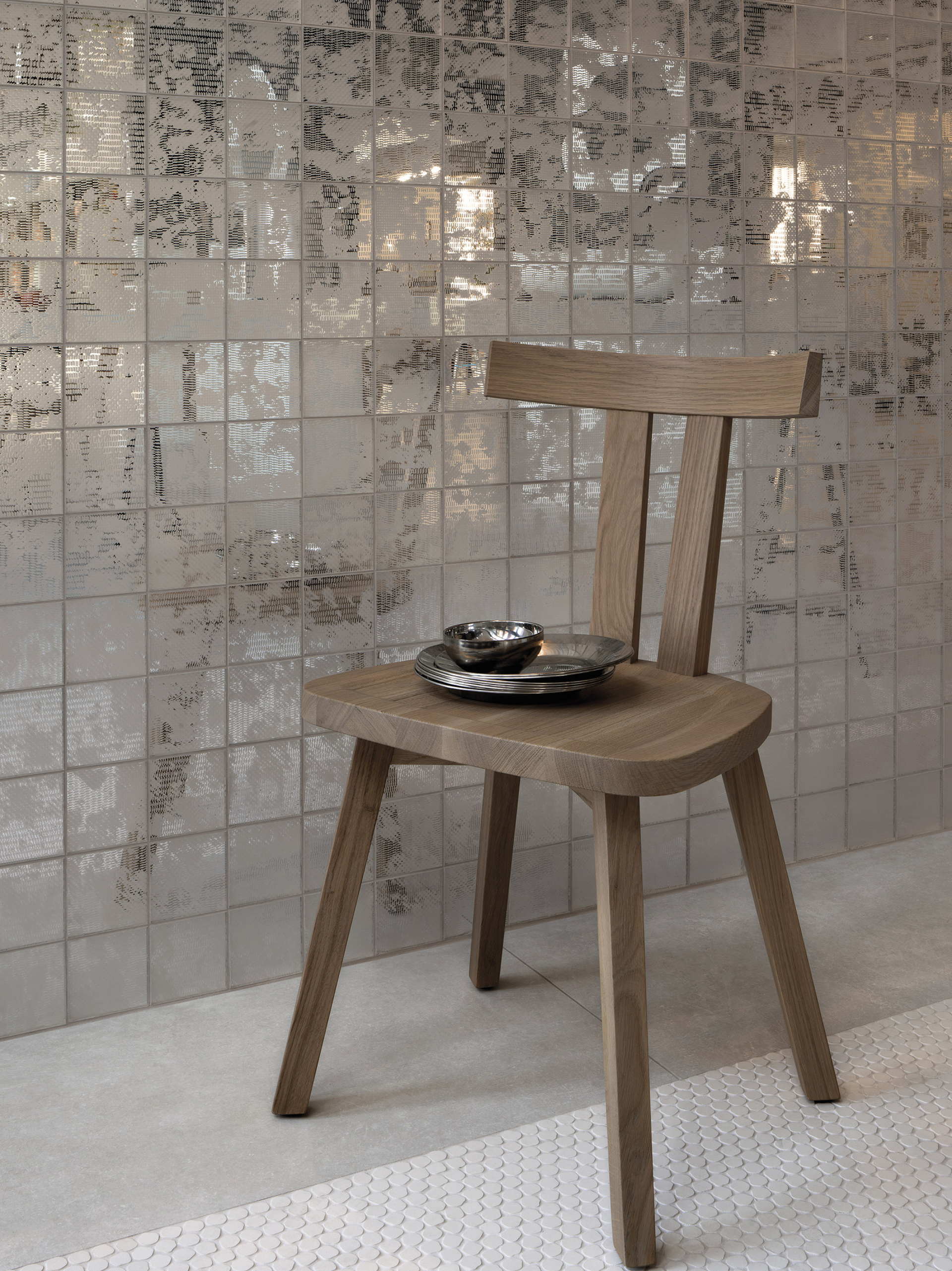 La diseñadora italiana Paola Navone, en su eterna búsqueda de lo nuevo, resignifica el espejo insertando elementos abstractos en la superficie y presenta una nueva perspectiva al mundo de los revestimientos.