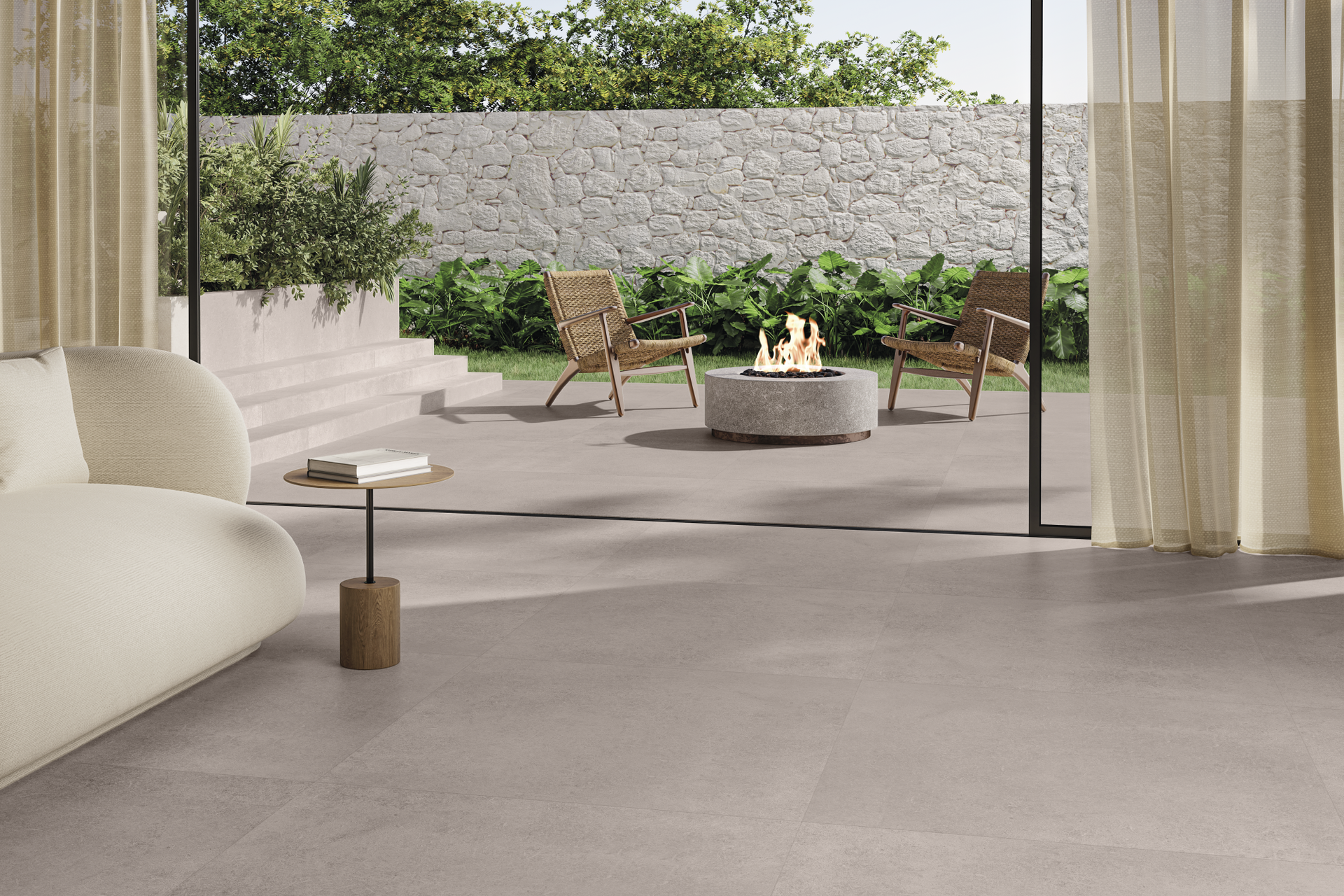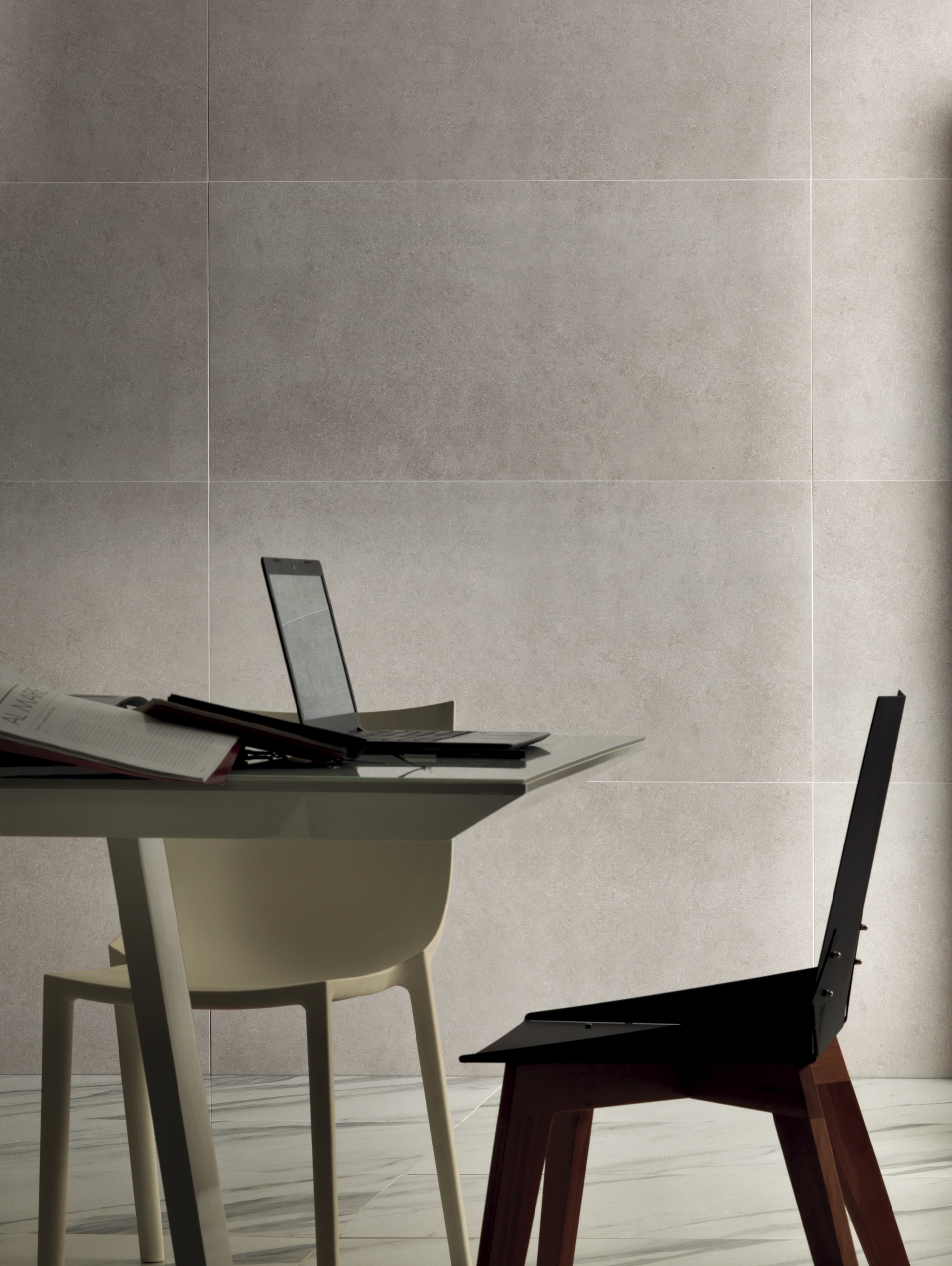O concreto é uma mistura de materiais que determinam suas características técnicas e estéticas. A tendência fusion se encaixa perfeitamente nesse material, que se transforma em novas superfícies quando combinado com a pedra natural, por exemplo. A fusão de fragmentos de mármores e limestones com o concreto compõem o porcelanato Hangar, título que sinaliza a alta performance do produto. Para uso em ambientes residenciais e comerciais, Hangar exibe a superfície dos materiais cimentícios mescladas com fragmentos de pedras naturais. Material inovador e contemporâneo para uso na casa toda, seja em ambientes internos ou externos.