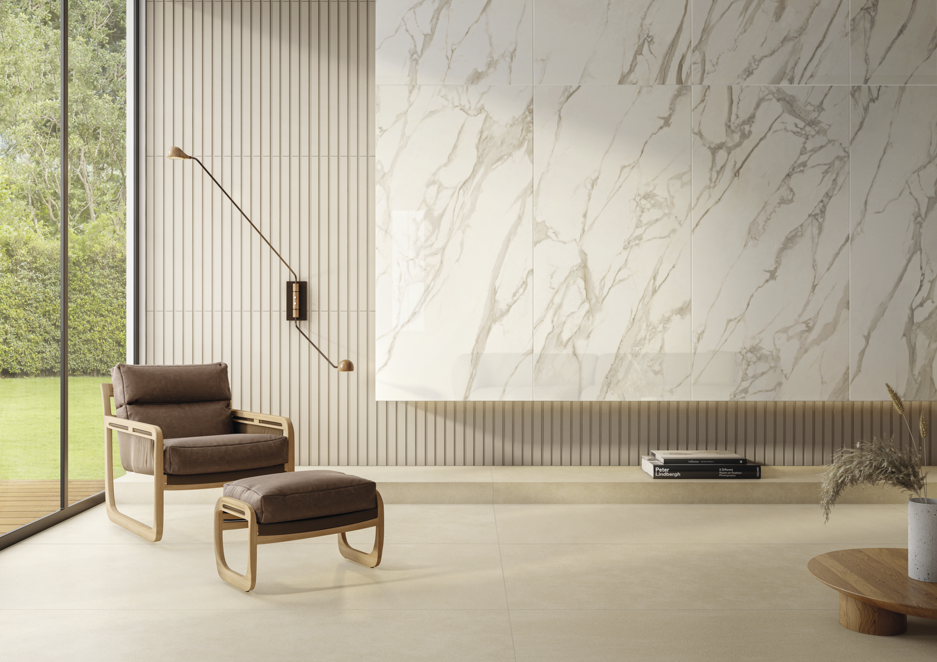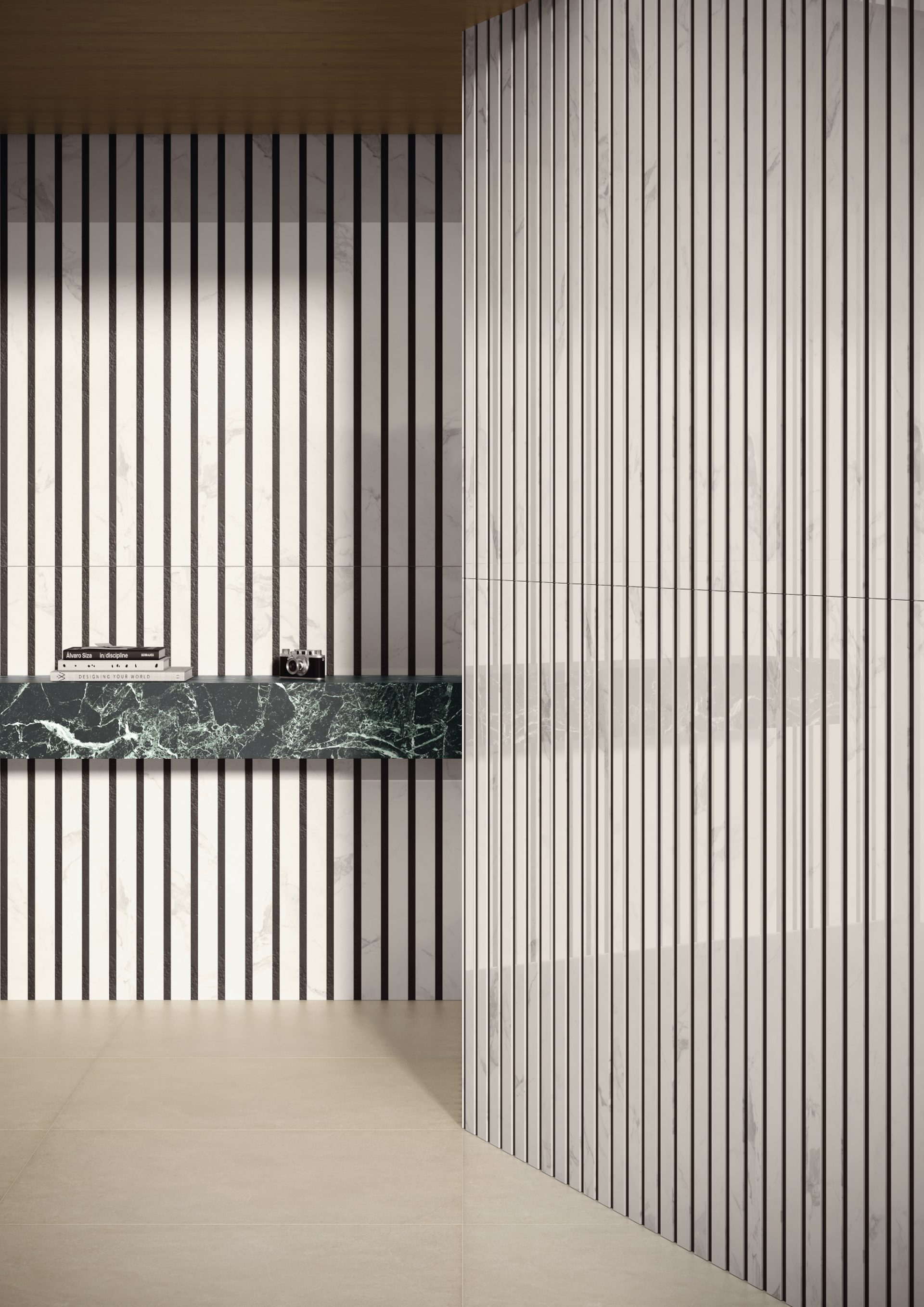 O conceito Ripa Mood foi revisitado em novos e surpreendentes mármores: o clássico Bianco di Lucca e o intenso or de Cacau.