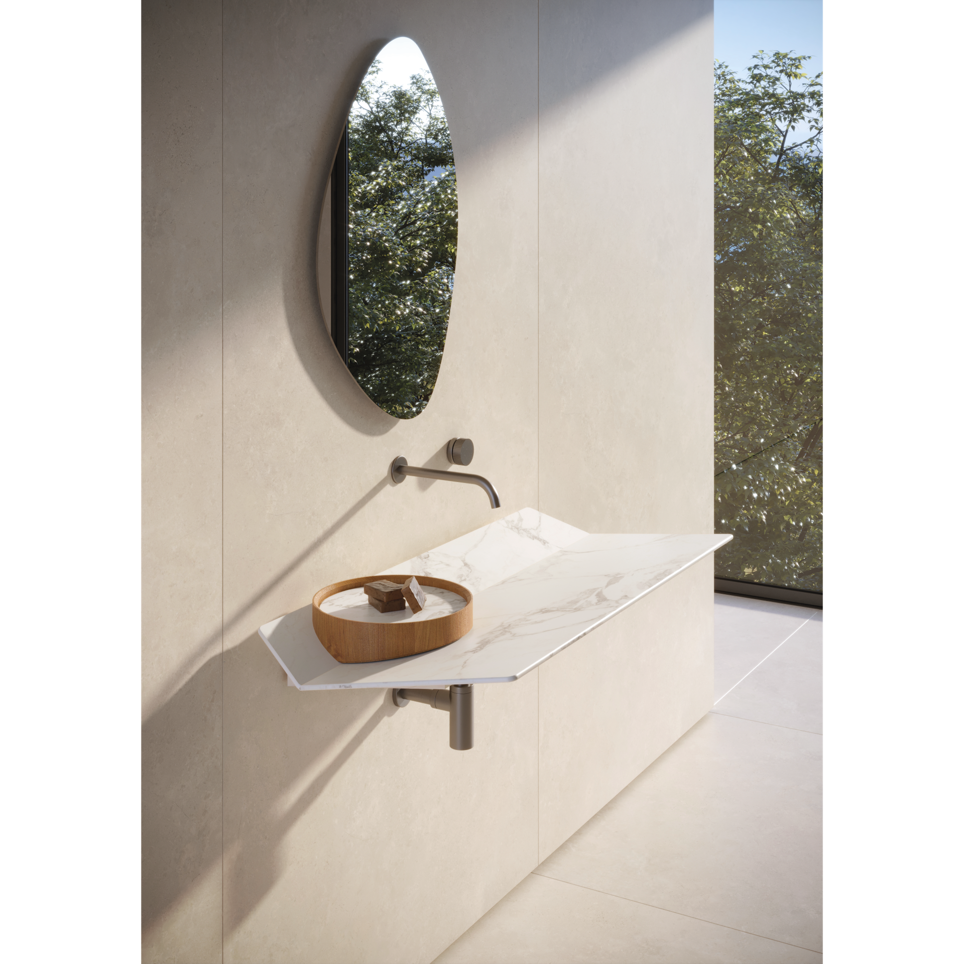 Uma peça irreverente, com linhas simples e atemporais, que alia funcionalidade à inovação da forma e do material. A solução ideal para banheiros que trazem design e arquitetura em sua assinatura