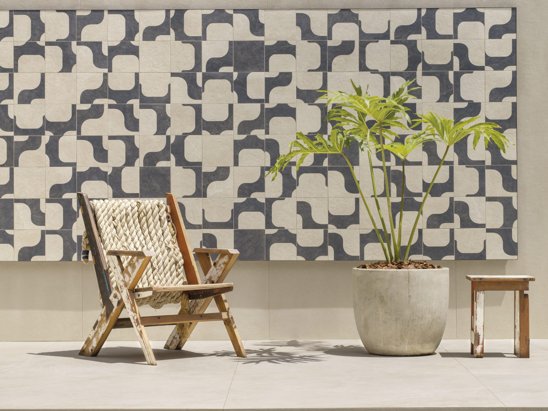 Inspirado nos desenhos do calçadão de Ipanema, o Neotropical Sidewalk Mix da linha Ipanema da Portobello incorpora padrões geométricos e cores que remetem às tradicionais pedras portuguesas.