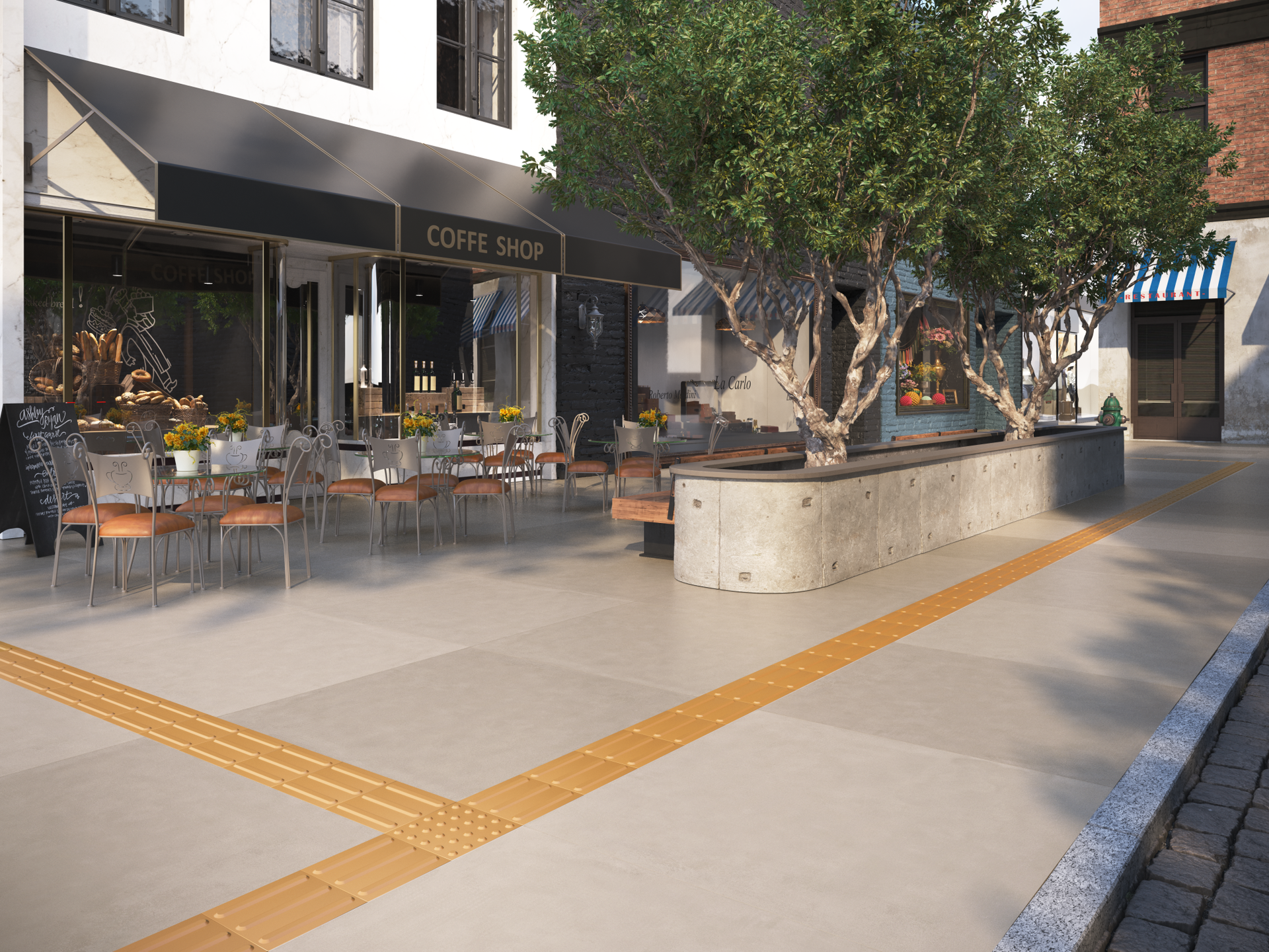 Existem dois tipos de piso tátil: o de direção (que possui formas verticais) e o de alerta (que possui bolinhas). Aqui na Portobello, recriamos os pisos táteis, adicionando suas formas em porcelanatos antiderrapantes, sendo mais resistentes e duráveis do que as tradicionais borrachas, evitando também o descolamento e perda do material.