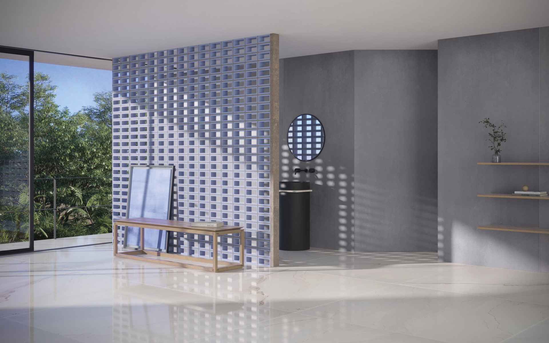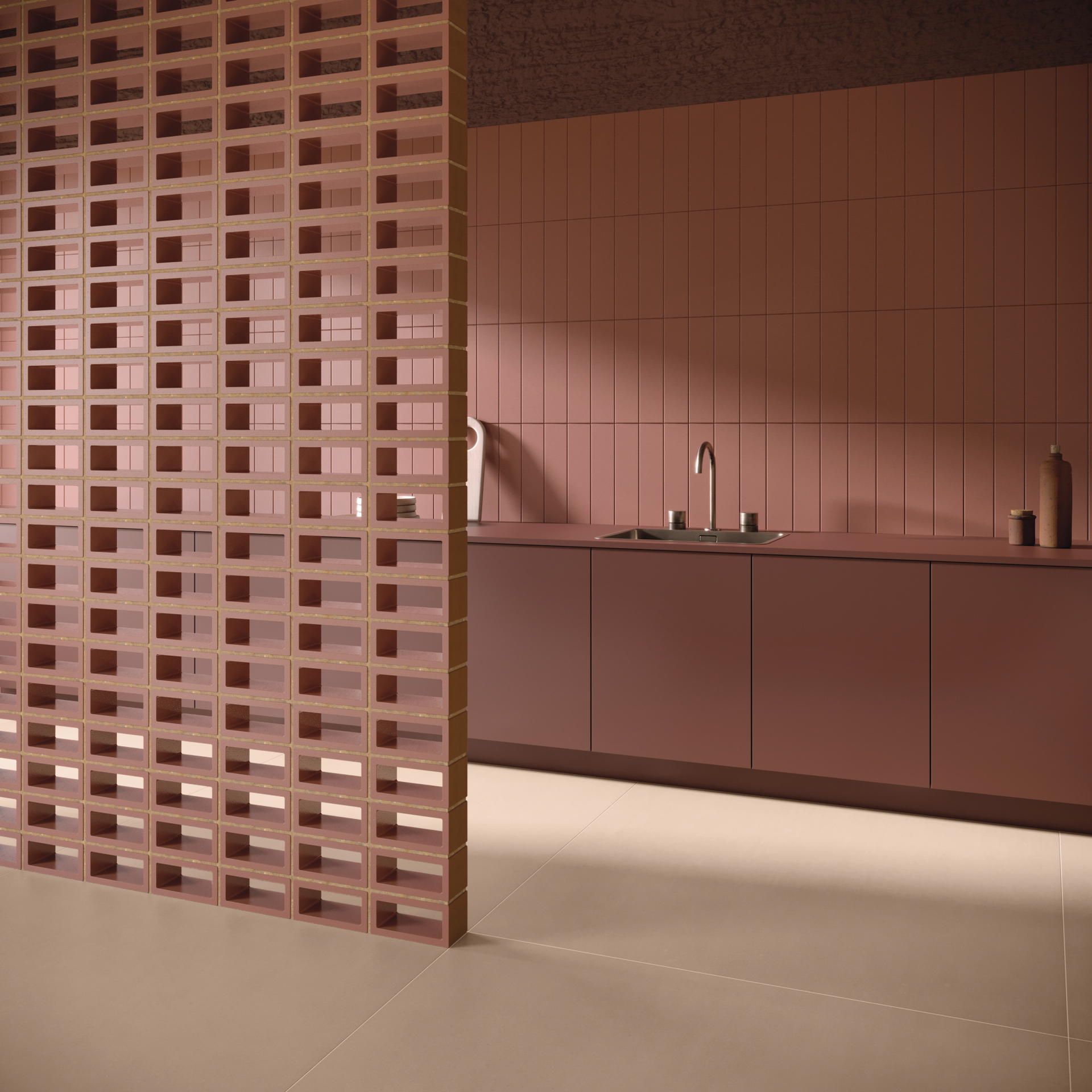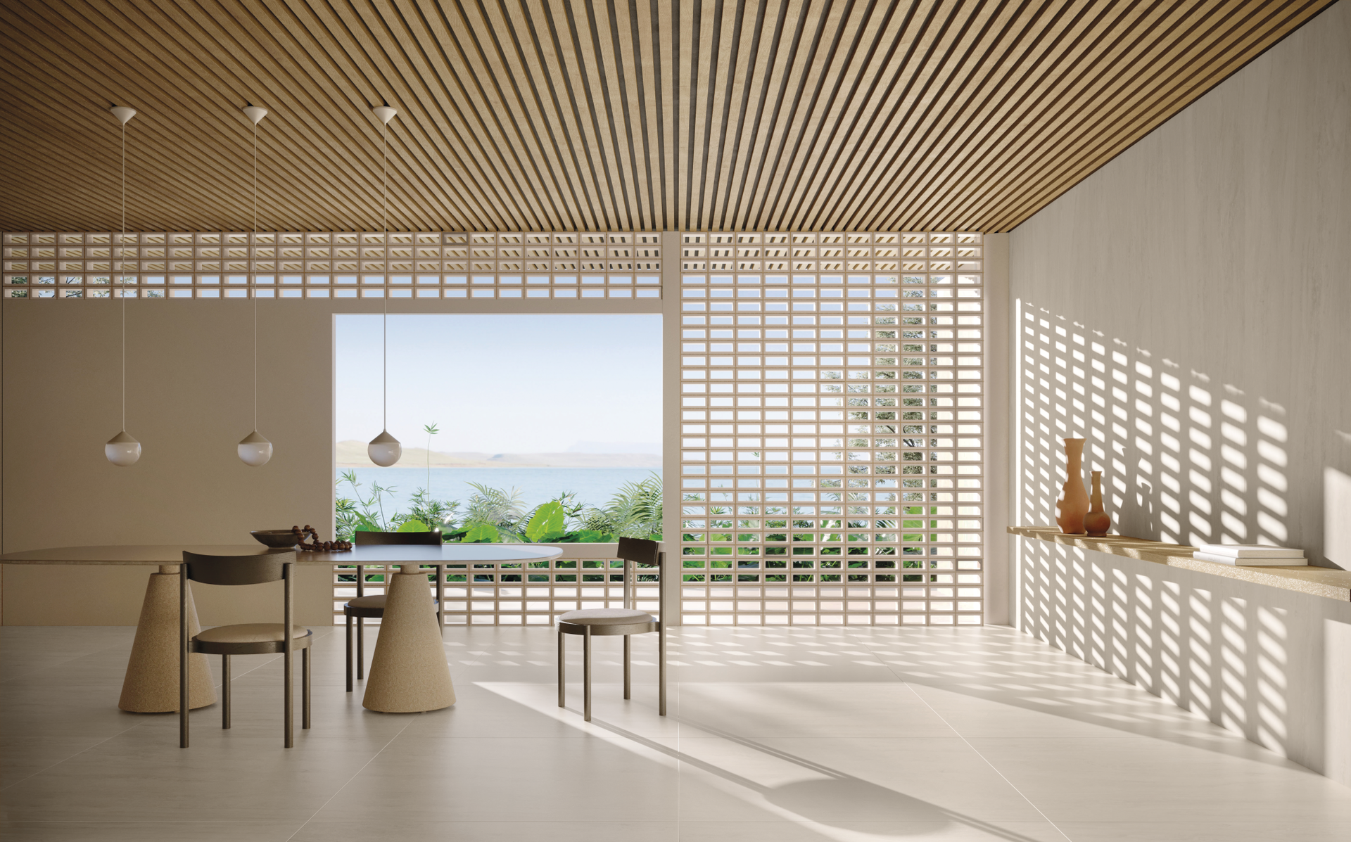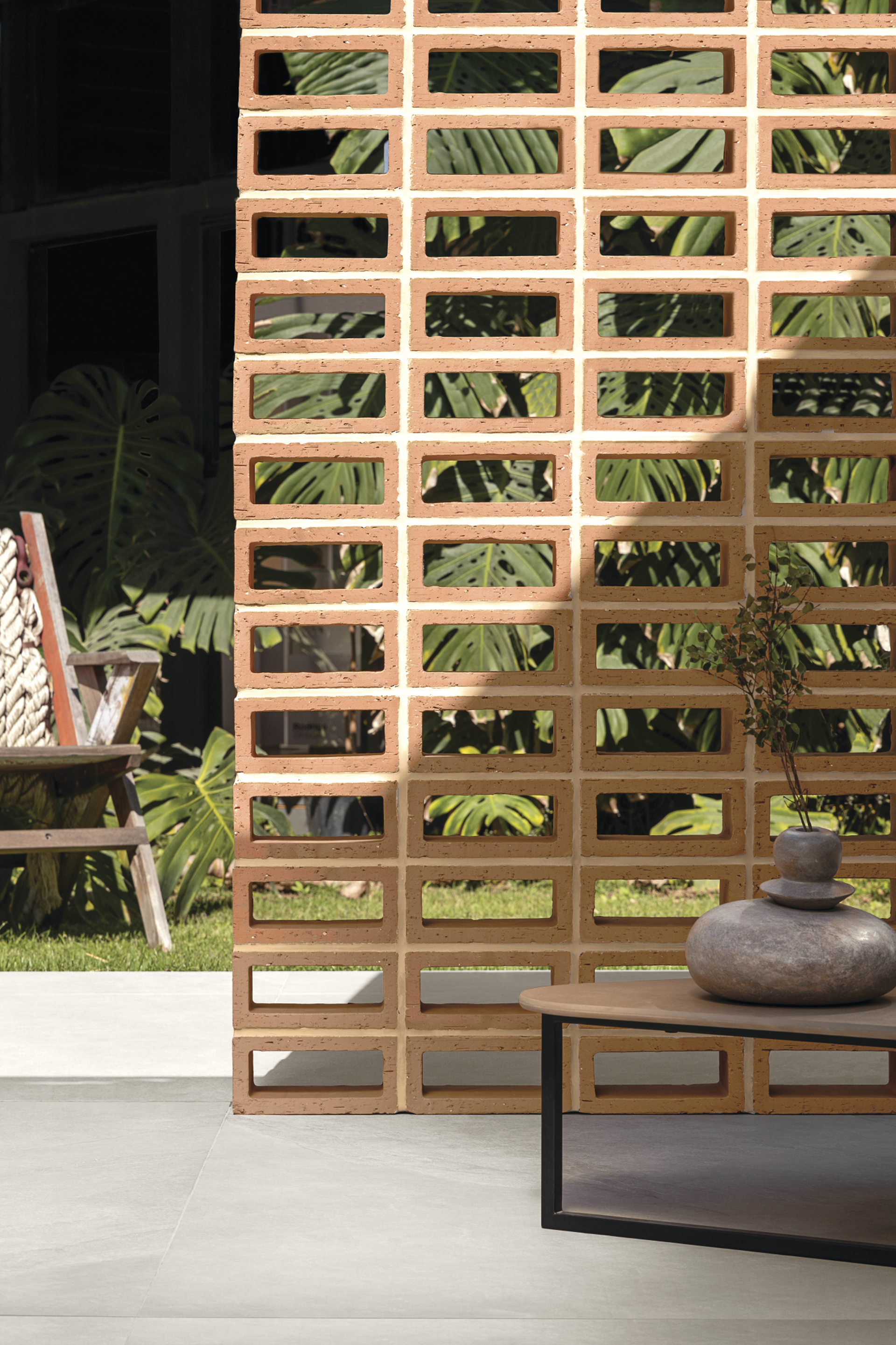 Cores naturais aliadas à matéria-prima ancestral marcam a estética dos cobogós On Fire.