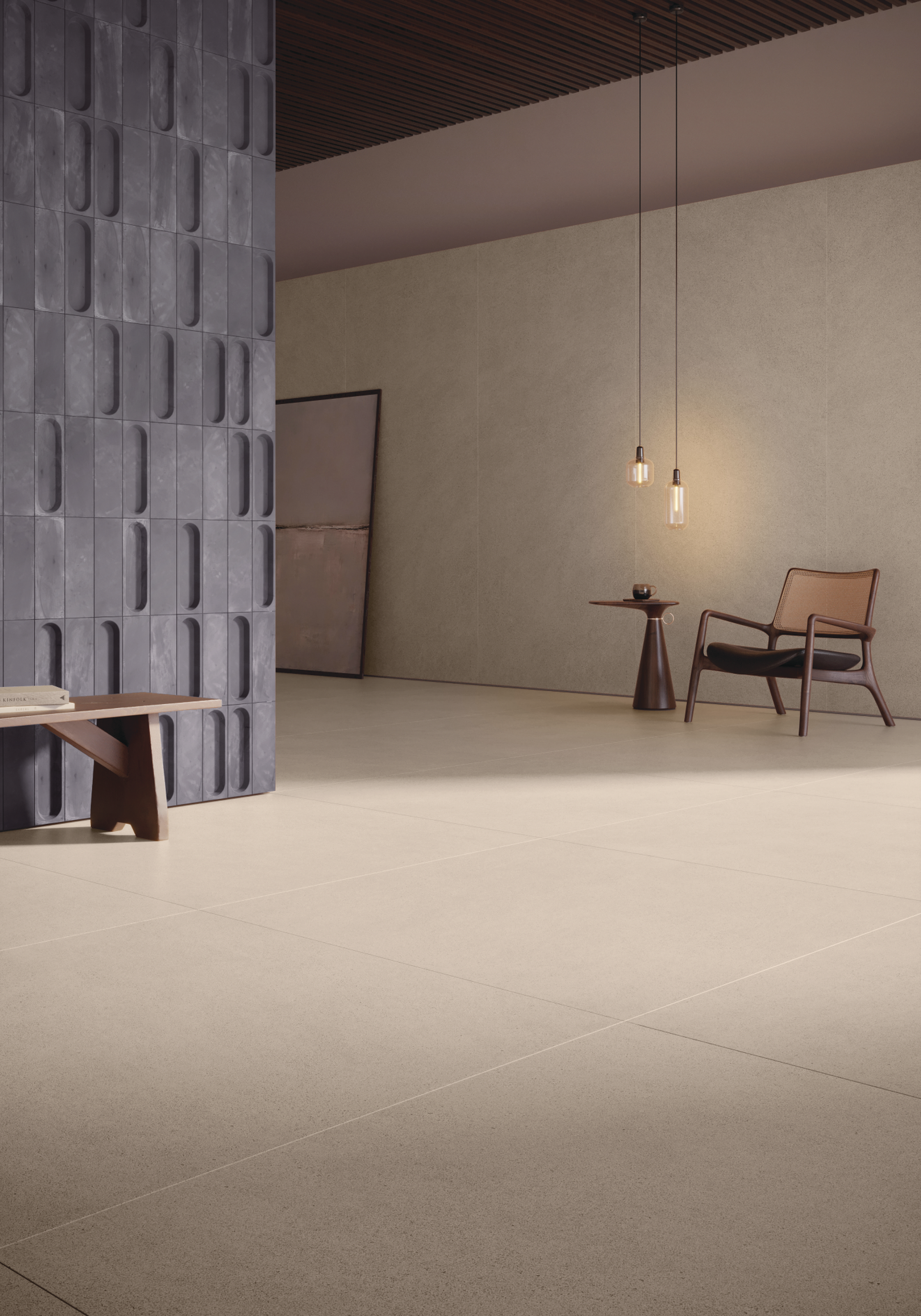 Fragmentos do tempo, sobre a argila como matéria-prima, revelam em tons naturais um material compacto e contemporâneo, a partir das novas tecnologias cerâmicas.