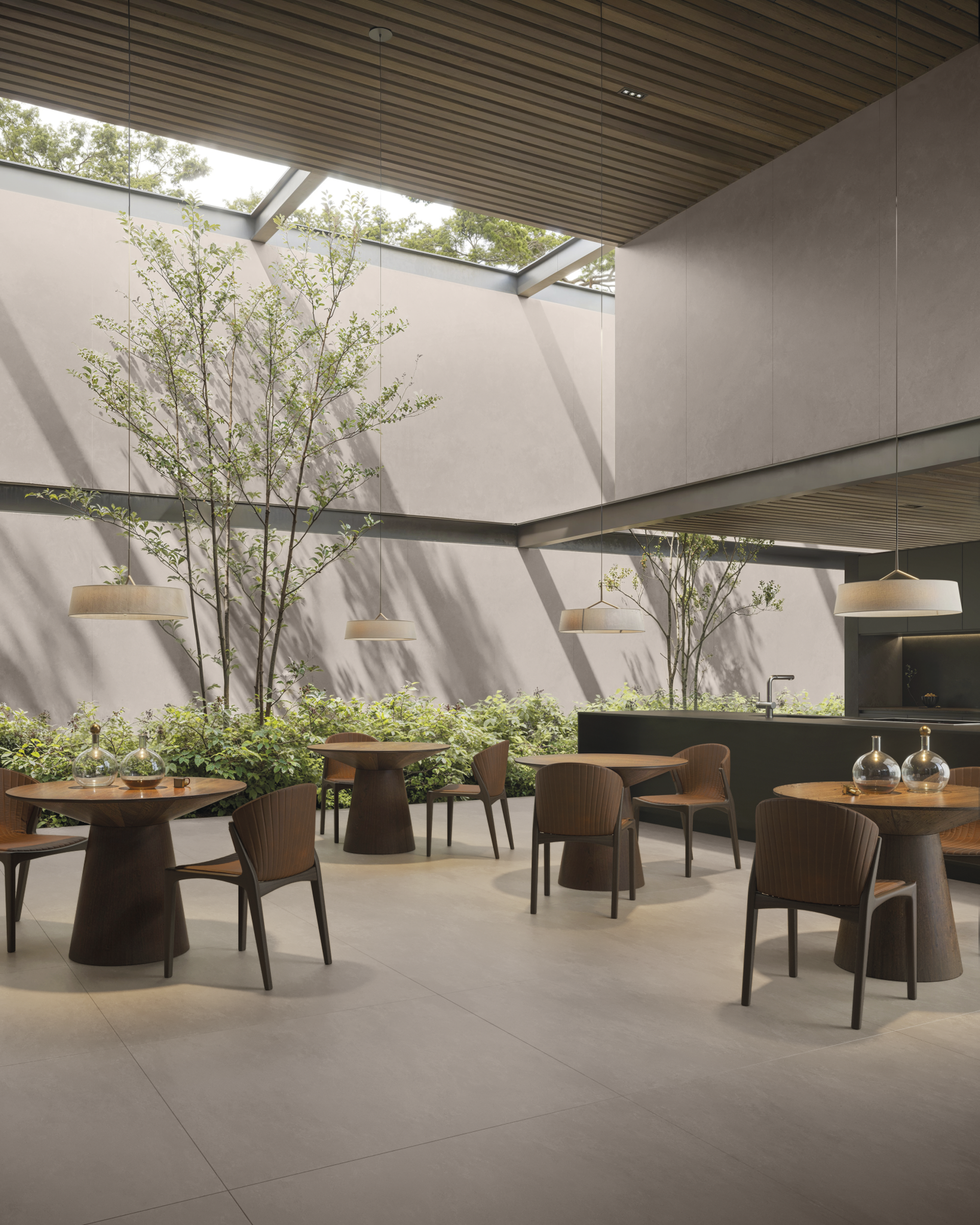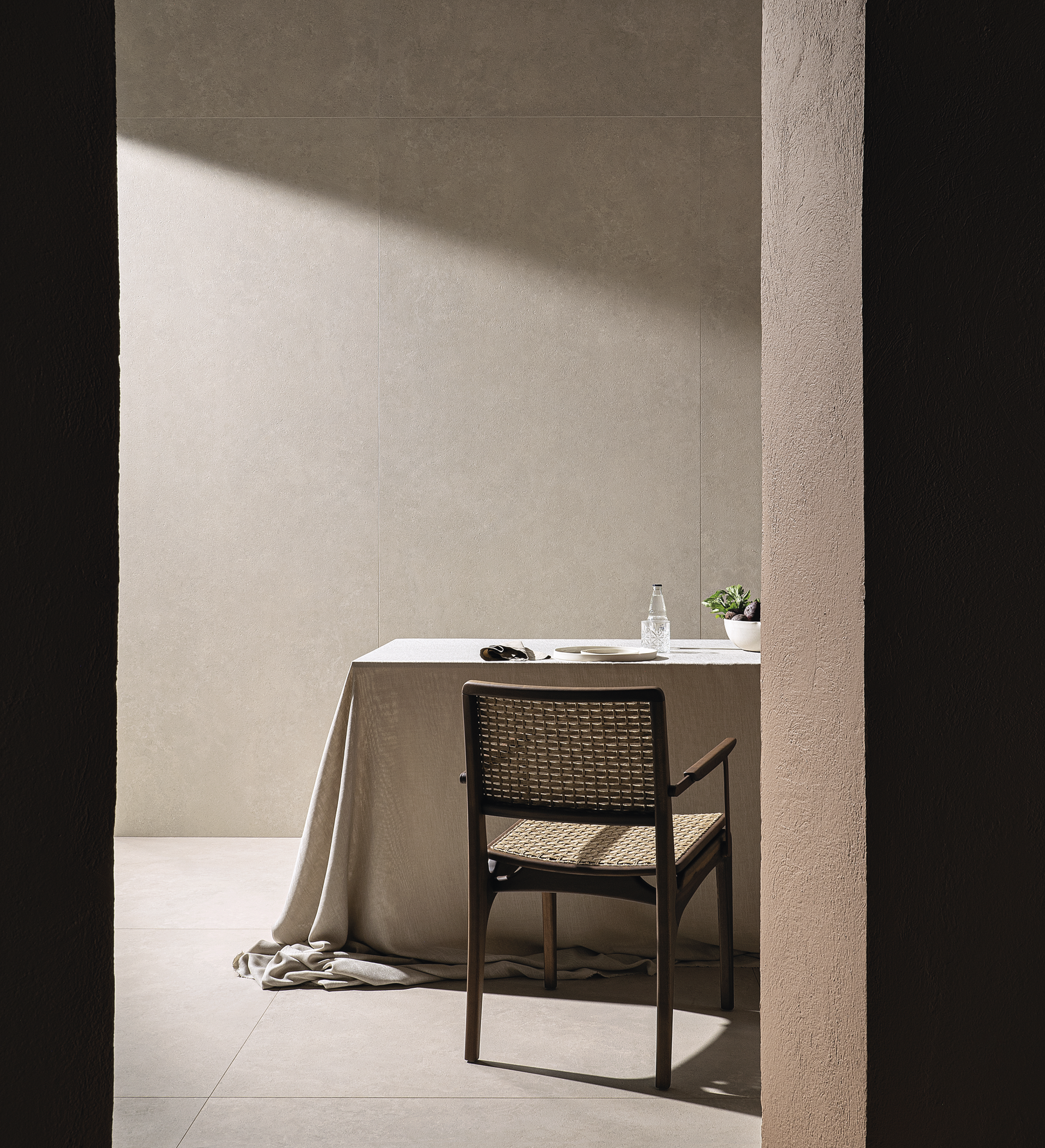 Essencial e ousada, a fusão de limestones e mármores, materializa a arte e o ofício do ceramista ao criar uma nova matéria. A força e intensidade das pedras naturais imersas na sutileza da cerâmica não são espontâneas, são o exercício preciso do design e a ousadia em busca do equilíbrio ideal.