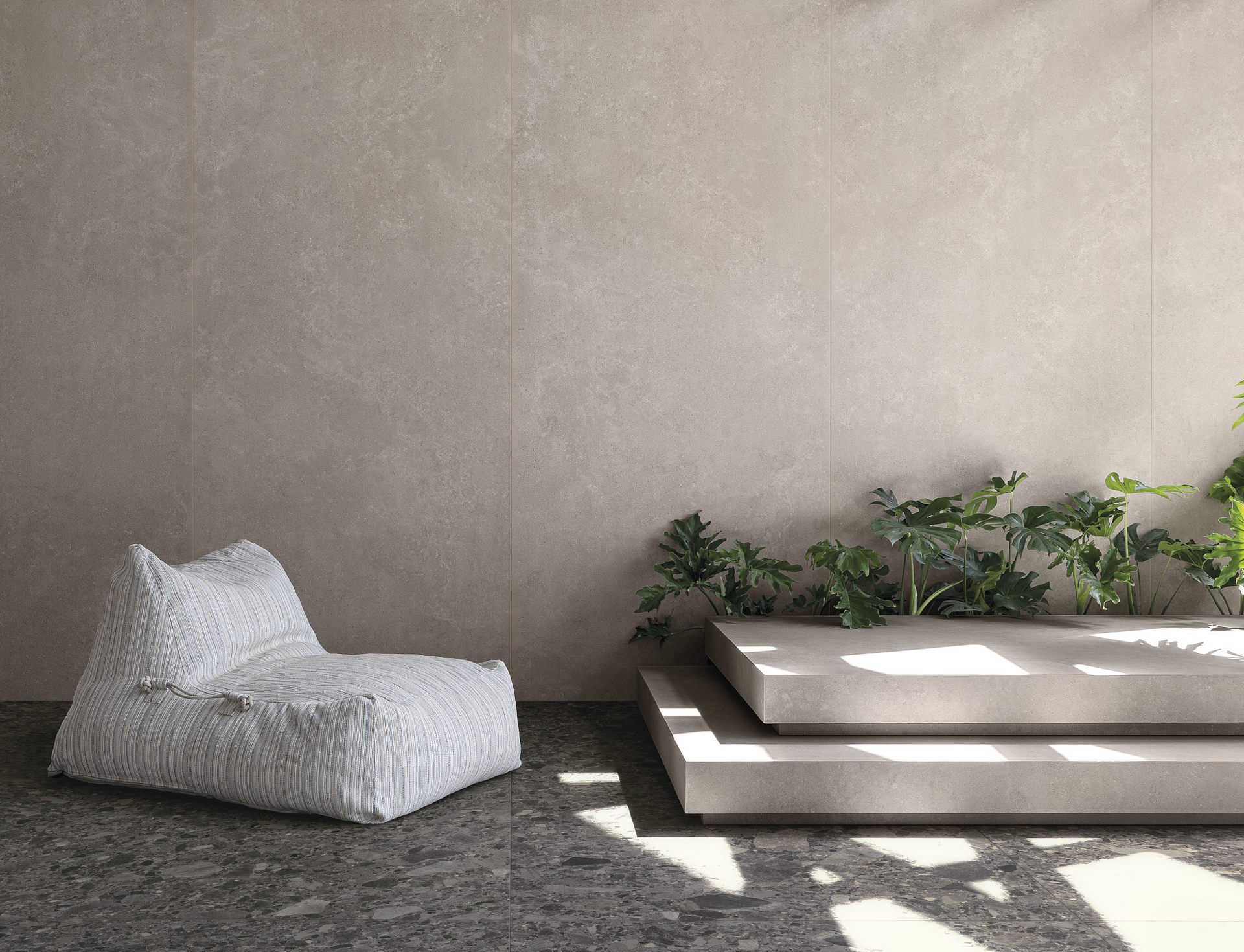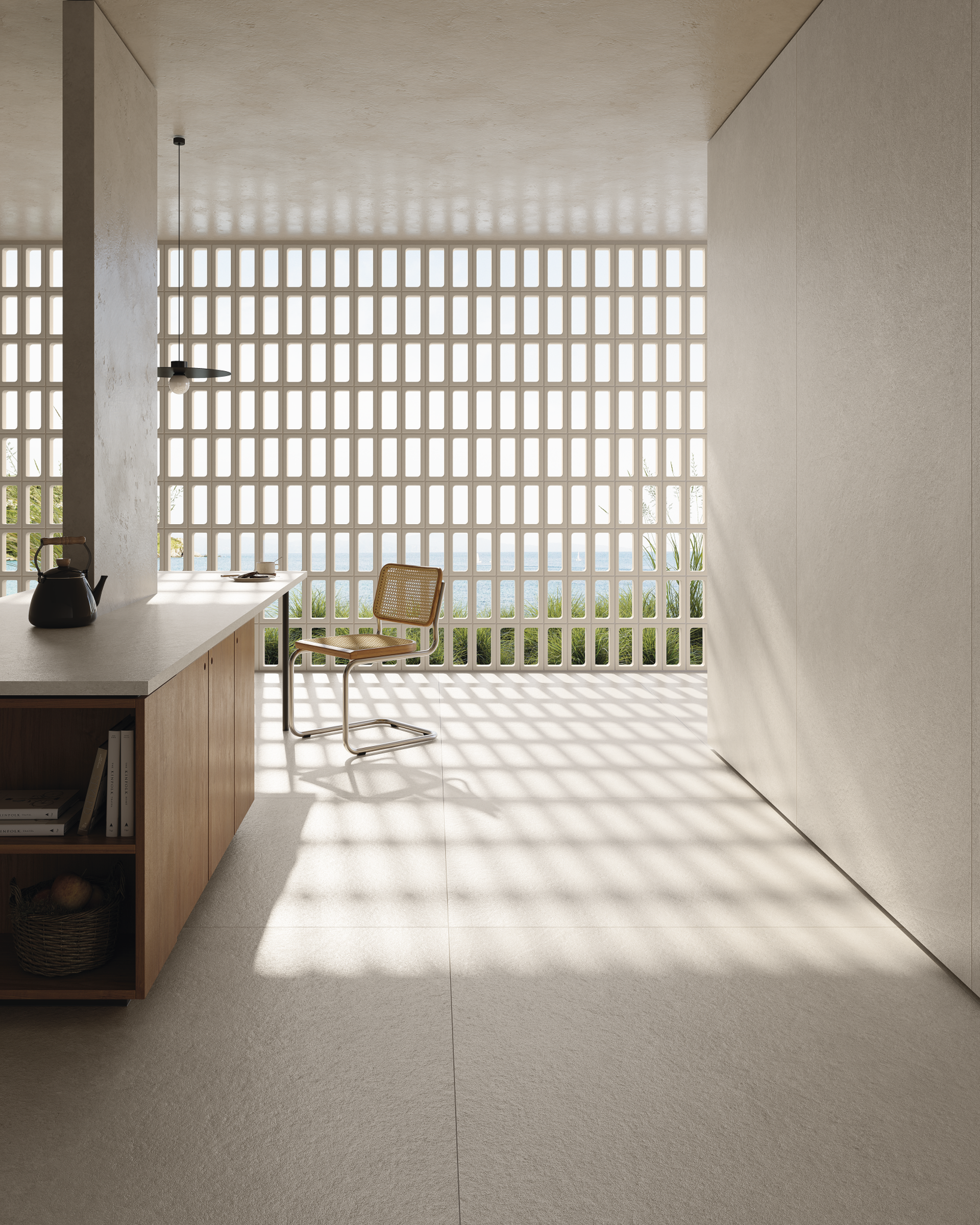 Zesty revela-se único, autoral, sob medida para ser reconhecido, sem se sobrepor à identidade do projeto. É uma proposta para revestir todos os ambientes da casa, com texturas esculpidas na superfície, seja na versão natural ou para as áreas externas. Disponível nas cores Off White e Light Gray.